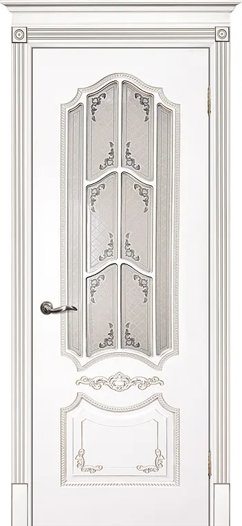 Дверь Текона эмаль Smalta 10 белый RAL 9003 патина серебро, остекленная