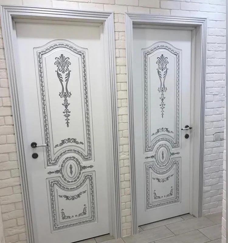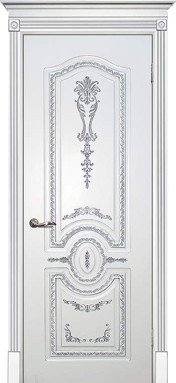 Дверь Текона эмаль Smalta 11 белый RAL 9003 патина серебро, глухая