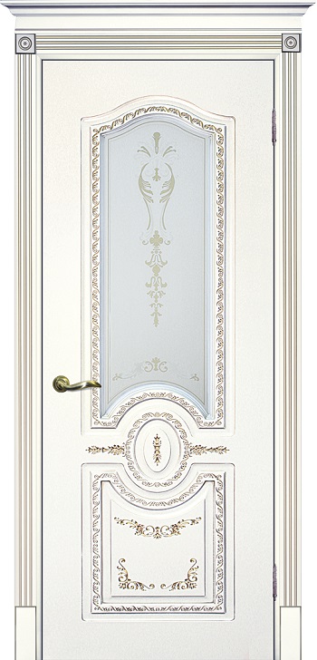 Дверь Текона эмаль Smalta 11 белый RAL 9003 патина золото, остекленная