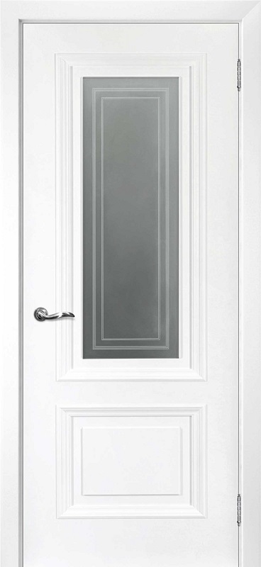 Конструкция двери филенчатая с багетом по периметру филенок. Каркас полотна состоит из бруса хвойных пород, облицован панелями МДФ. Покрытие эмалированное, стойкое и практичное, можно производить уборку увлажненной салфеткой. Модель выполнена со стеклом.