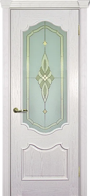 Дверь Текона шпон Фрейм 01 ясень айсберг, витраж Афродита сатинат белый.