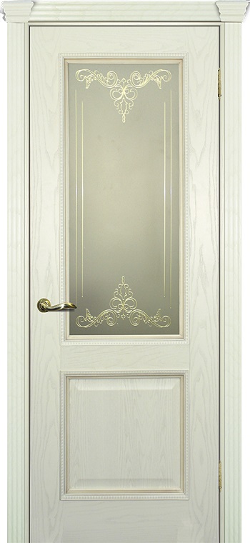 Дверь Текона шпон Фрейм 02 ясень бисквит патина карамель, витраж №3 золото сатинат белый.