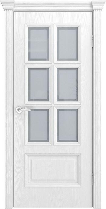 Дверь Текона шпон Фрейм 10 ясень белоснежный, сатинат белый с фацетом.