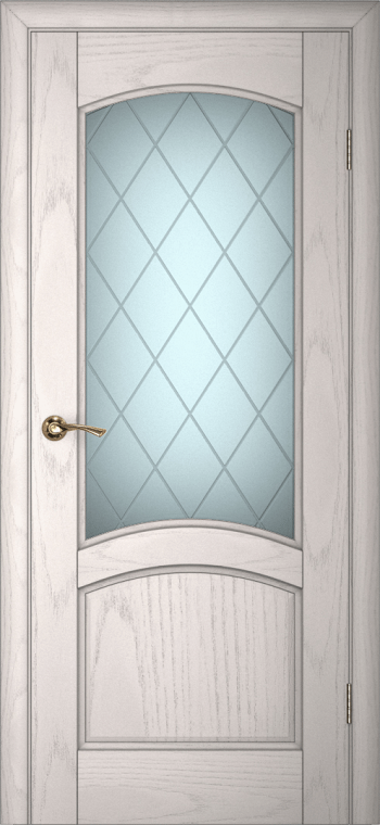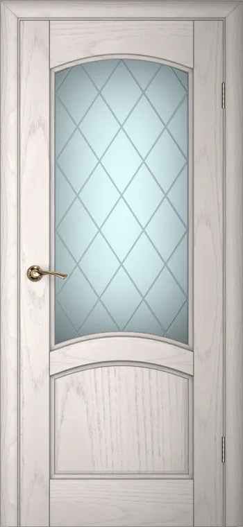 Дверь Текона шпон Вайт 01 ясень айсберг, гравировка Готика сатинат белый.