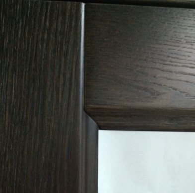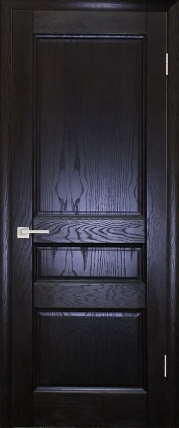 Каркас изготовлен из сращенного массива бессучковой сосны. С обеих сторон на каркас накладывается плита HDF и окутывается натуральным шпоном ценных пород дерева. Полотна филенчатые.