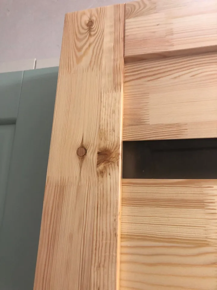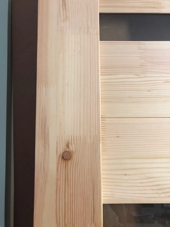 Особенность модели - это филенки с цельными ламелями, т.е. отсутствуют визуальные шиповые стыки склеиваемых ламелей.