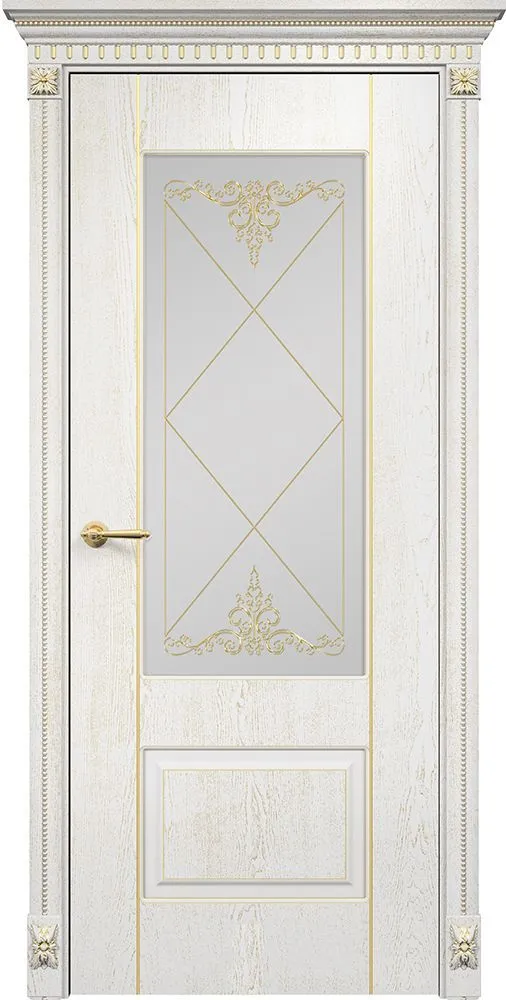 Дверь Оникс Марсель фрезерованная, эмаль белая патина золото, сатинат контурный витраж №1