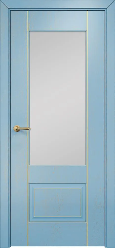 Дверь Оникс Марсель фрезерованная эмаль голубая патина золото, сатинат