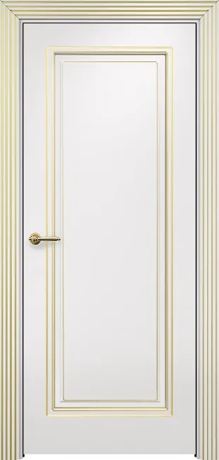 Дверь Оникс Турин фрезерованная №2 эмаль белая патина золото по контуру, глухая