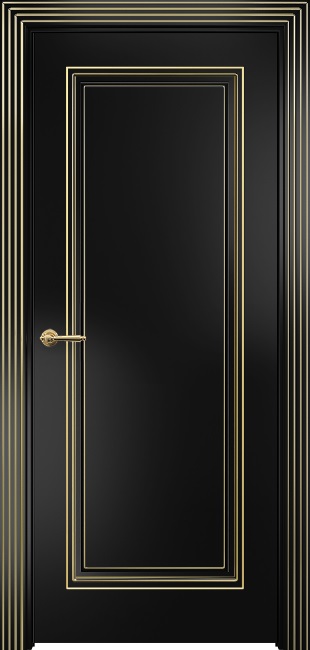 Дверь Оникс Турин фрезерованная №2 эмаль черная патина золото по контуру, глухая