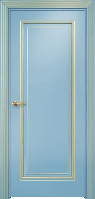 Дверь Оникс Турин фрезерованная №2 эмаль голубая патина золото по контуру, глухая