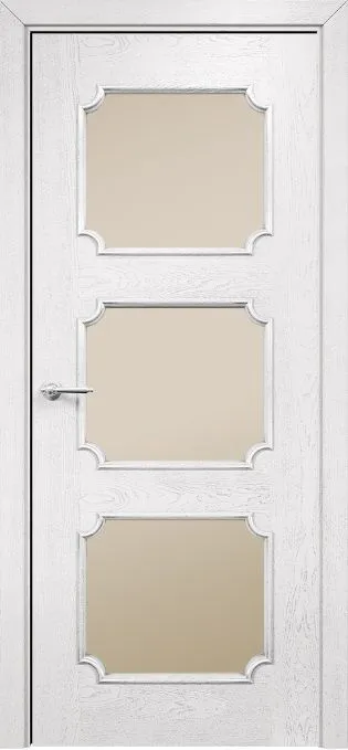 Дверь Оникс Валенсия эмаль белая патина серебро, сатинат бронза