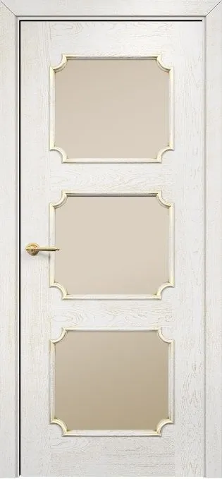 Дверь Оникс Валенсия эмаль белая патина золото, сатинат бронза