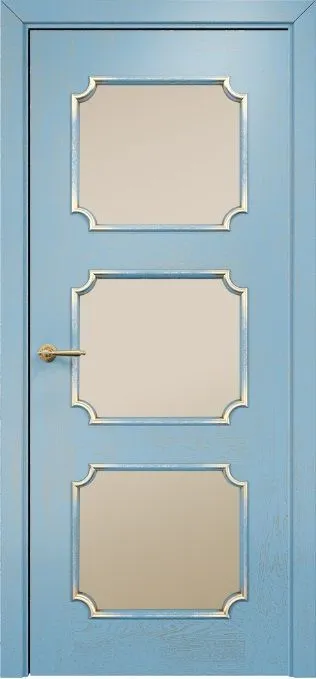 Дверь Оникс Валенсия эмаль голубая патина золото, сатинат бронза