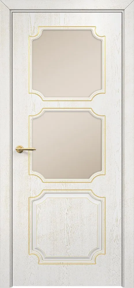 Дверь Оникс Валенсия фрезерованная, эмаль белая патина золото, сатинат бронза