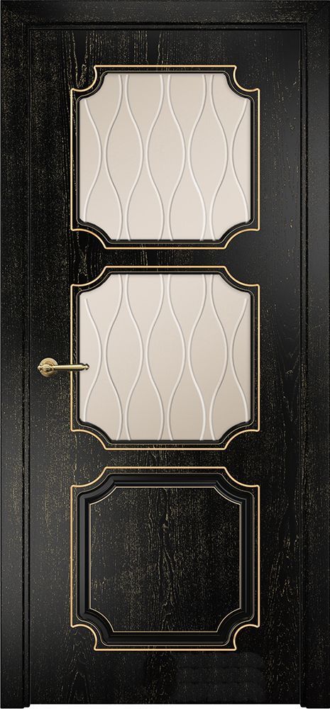 Дверь Оникс Валенсия фрезерованная эмаль черная патина золото, сатинат гравировка Волна
