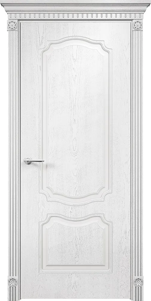 Дверь Оникс Венеция фрезерованная, эмаль белая патина серебро, глухая