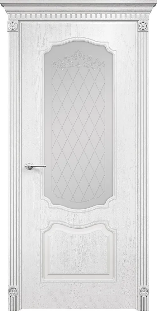 Дверь Оникс Венеция фрезерованная эмаль белая патина серебро, контурный витраж №5