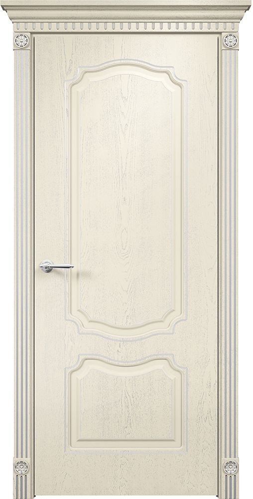 Дверь Оникс Венеция фрезерованная эмаль слоновая кость патина серебро, глухая