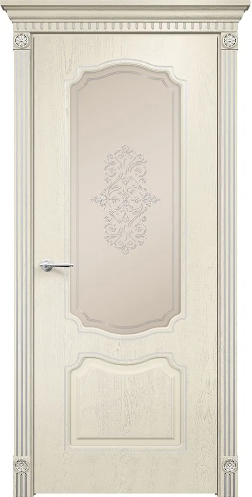 Дверь Оникс Венеция фрезерованная эмаль слоновая кость патина серебро, сатинат бронза контурный витраж №4