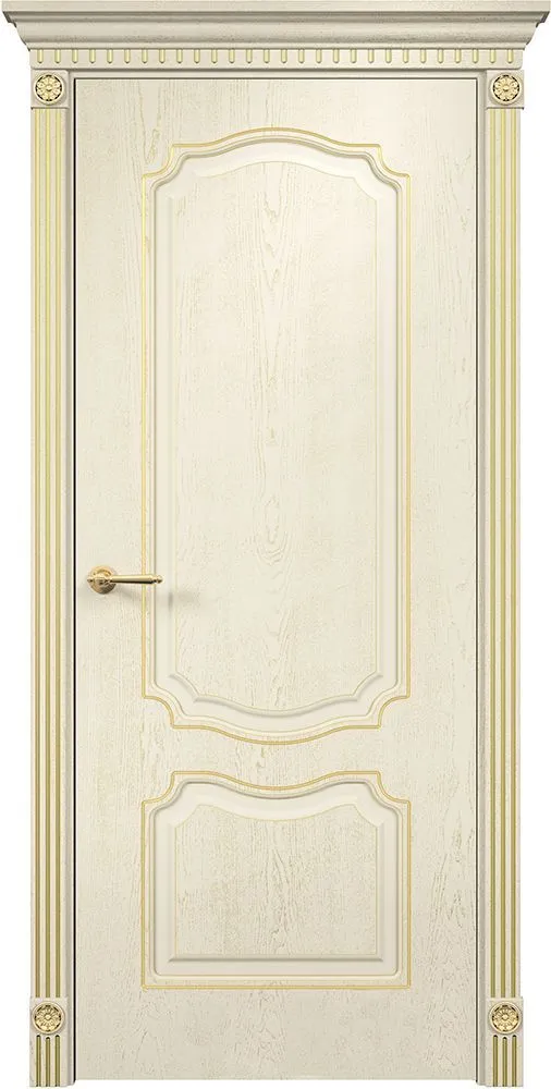 Дверь Оникс Венеция фрезерованная эмаль слоновая кость патина золото, глухая