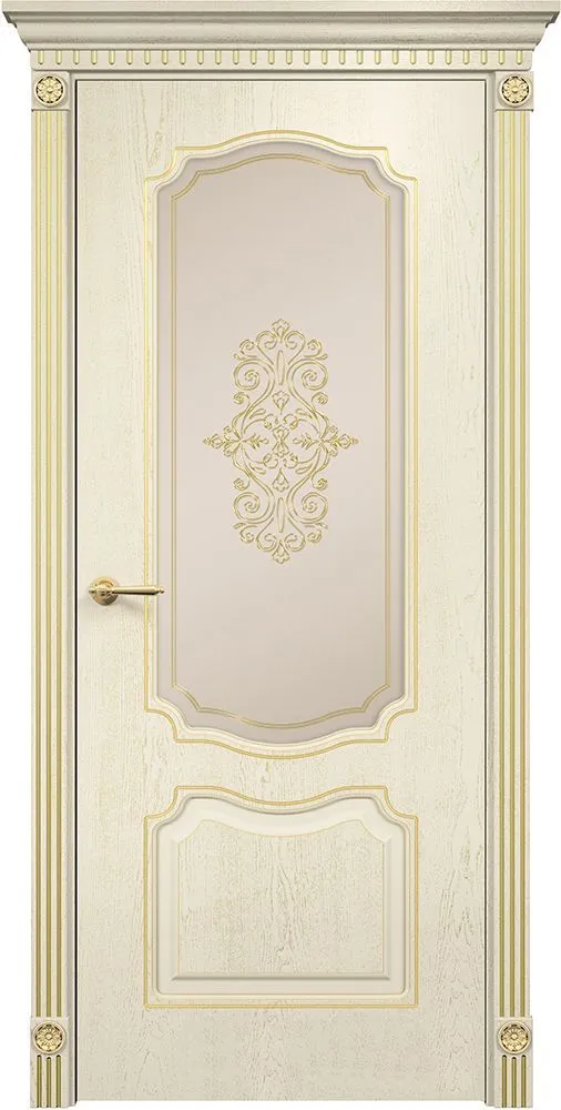 Дверь Оникс Венеция фрезерованная эмаль слоновая кость патина золото, сатинат бронза контурный витраж №4