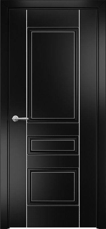 Дверь Оникс Версаль фрезерованная №2 эмаль черная патина серебро по контуру, глухая
