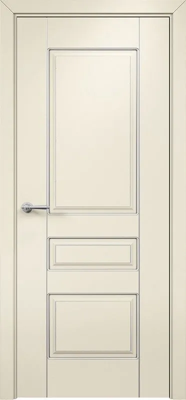 Дверь Оникс Версаль фрезерованная №2 эмаль слоновая кость патина серебро по контуру, глухая