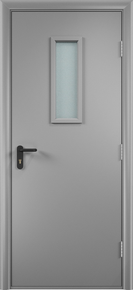 Фурнитура: Противопожарный замок под цилиндр с ключом; петли дверные (100 мм) с отделяемой картой для полотна; ручки противопожарные