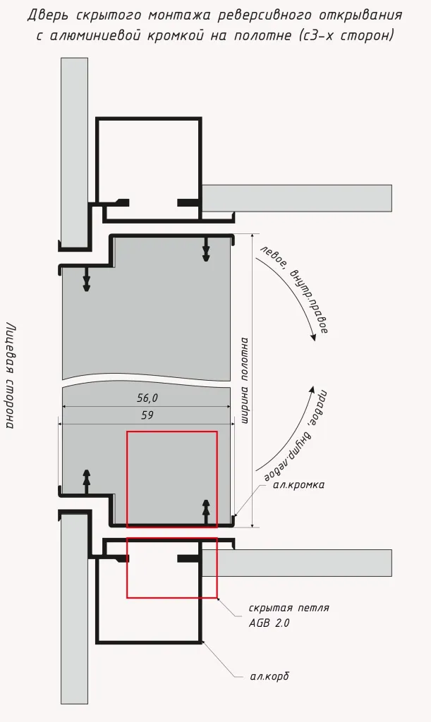 Дверь скрытая под покраску ИУ2, 2,2 м, кромка AL, revers, 59 мм