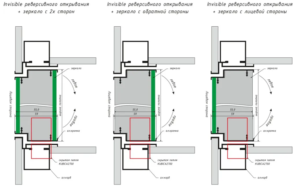 Дверь скрытая зеркало/зеркало ИУ2 Invisible 2,1 м, кромка AL, revers