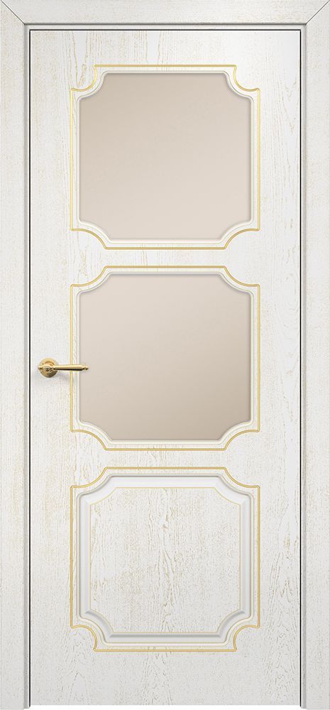 Дверь Оникс Валенсия фрезерованная, эмаль белая патина золото, сатинат бронза