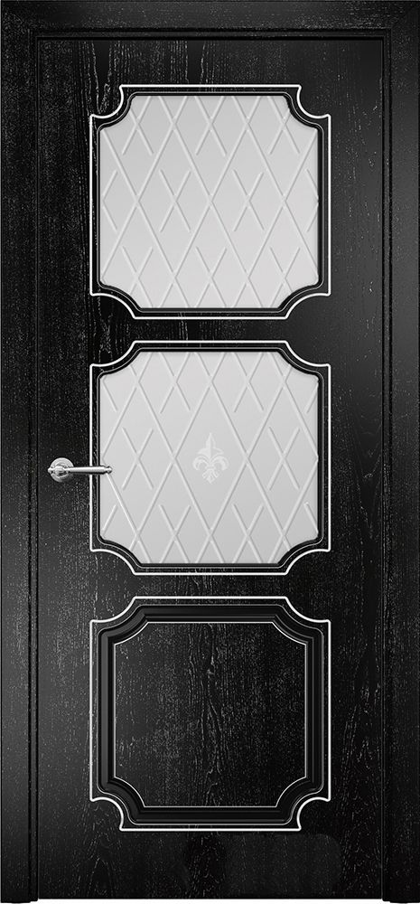 Дверь Оникс Валенсия фрезерованная эмаль черная патина серебро, сатинат гравировка Британия