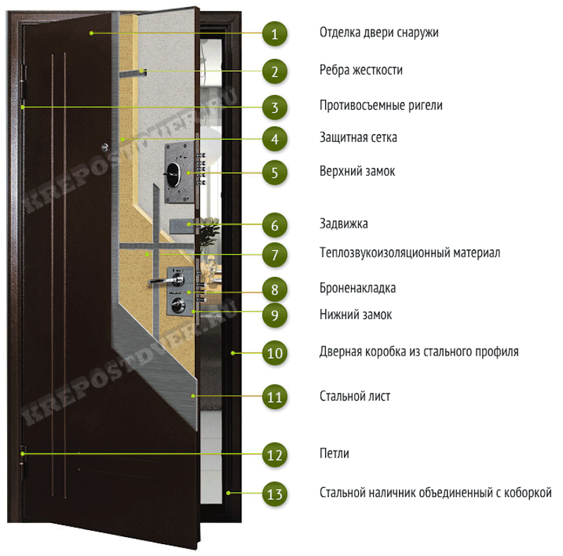 Назовем 10 основных характеристик, на которые стоит ориентироваться, выбирая, какие металлические двери купить:- Правильная толщина, дверь не должна вскрываться ножом, как консервная банка