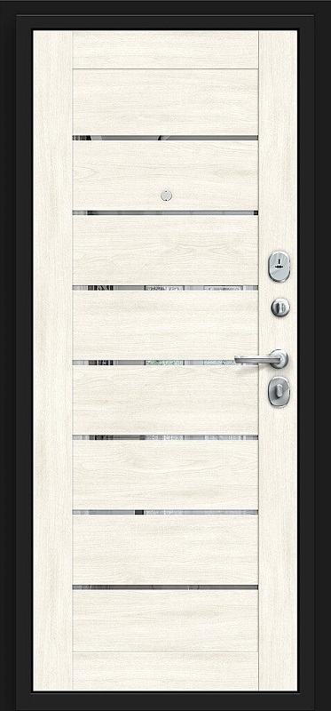 Металлическая входная дверь, модель Прайд Kale. Изготавливается из высококачественной углеродистой стали толщиной 1,2 мм. Внутренняя панель с покрытием Экошпон 22 мм и зеркалом Mirox Grey, упрощает задачу подбора входной двери под стиль межкомнатных дверей. В полотне установлена конструкционная панель EPS, которая не только обеспечивает теплоизоляцию, но и придает прочность полотну. Три контура высококачественного EPDM-уплотнителя, так же позволит избавить Вас от шумов снаружи и способствует плотному закрыванию двери по всей раме.