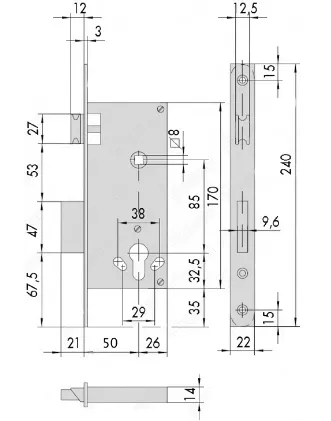 Замок врезной Cisa - 5C.110.60
