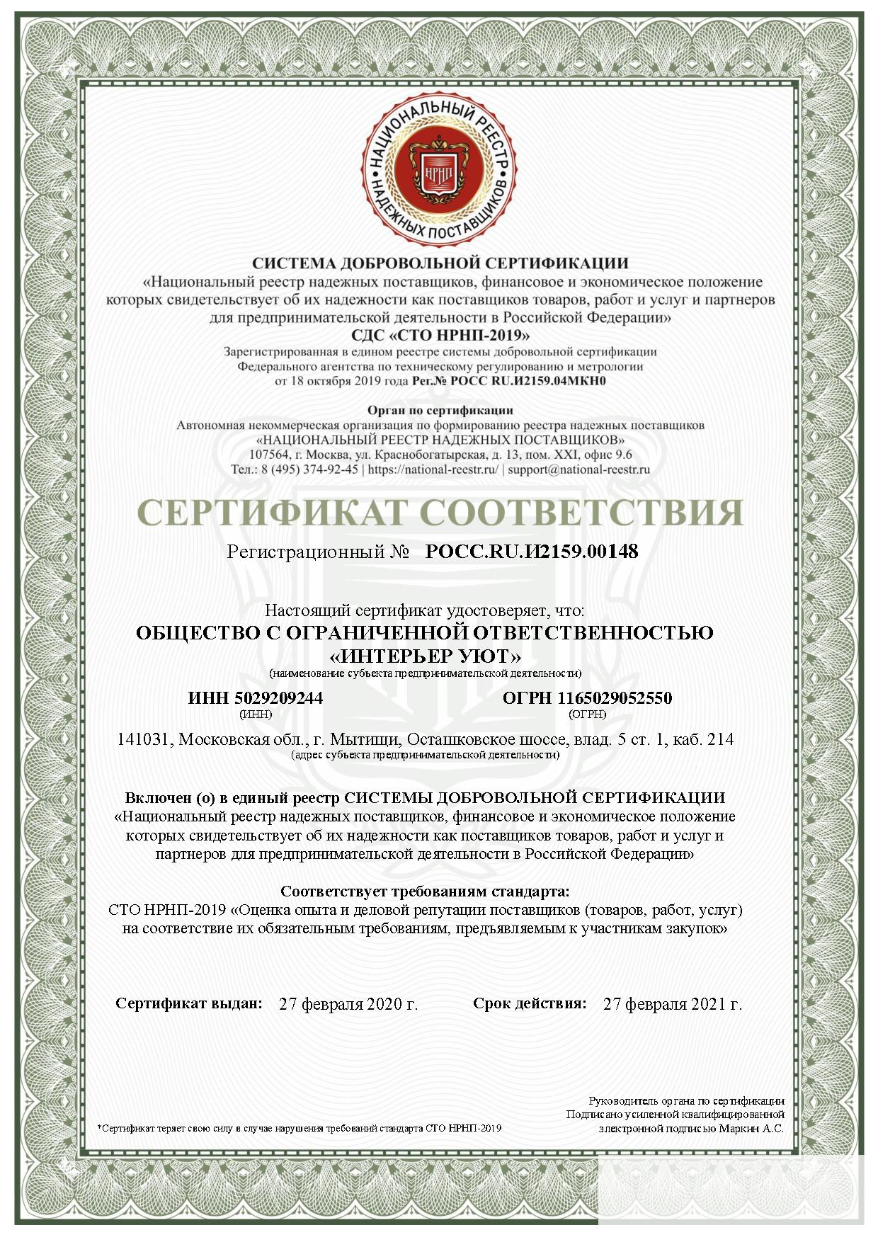 Реквизиты ООО "ИНТЕРЬЕР УЮТ":