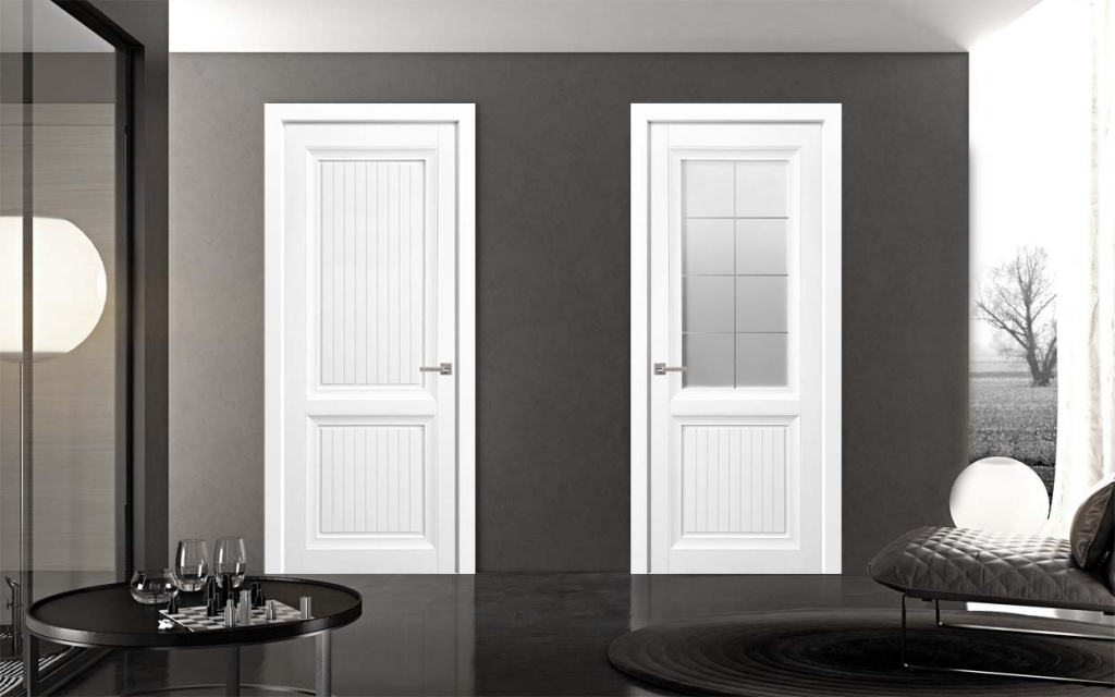 Особенность коллекции: фигурный широкий лаконичный багет, который полностью окутан декором и исполнен в одной плоскости с царгой и объёмная филёнка с вертикальной повторяющейся фрезой.