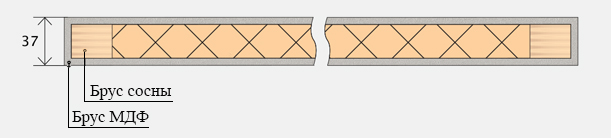 Конструкция каркасно-щитовая, каркас двери по периметру состоит из LVL бруса / сращенного массива сосны