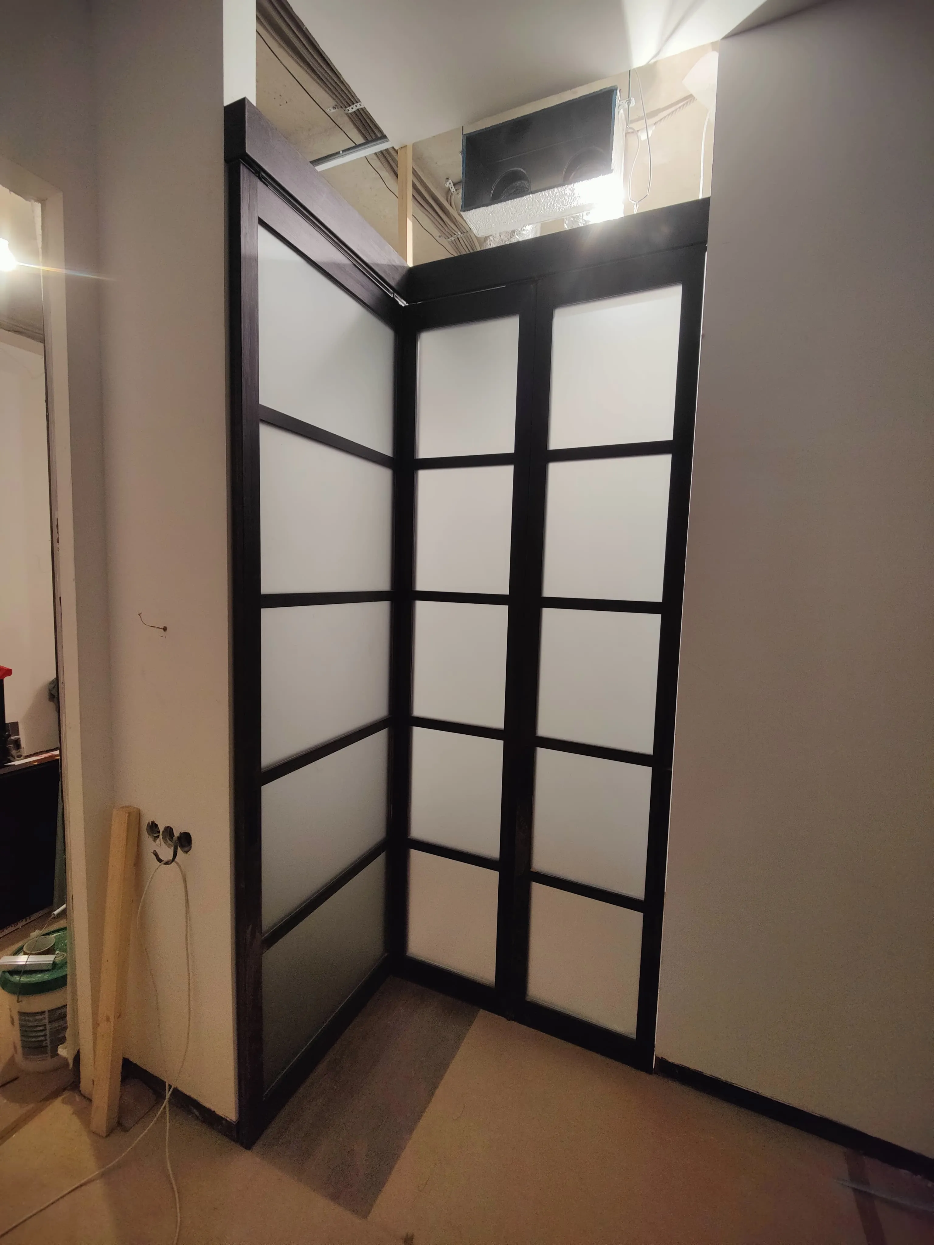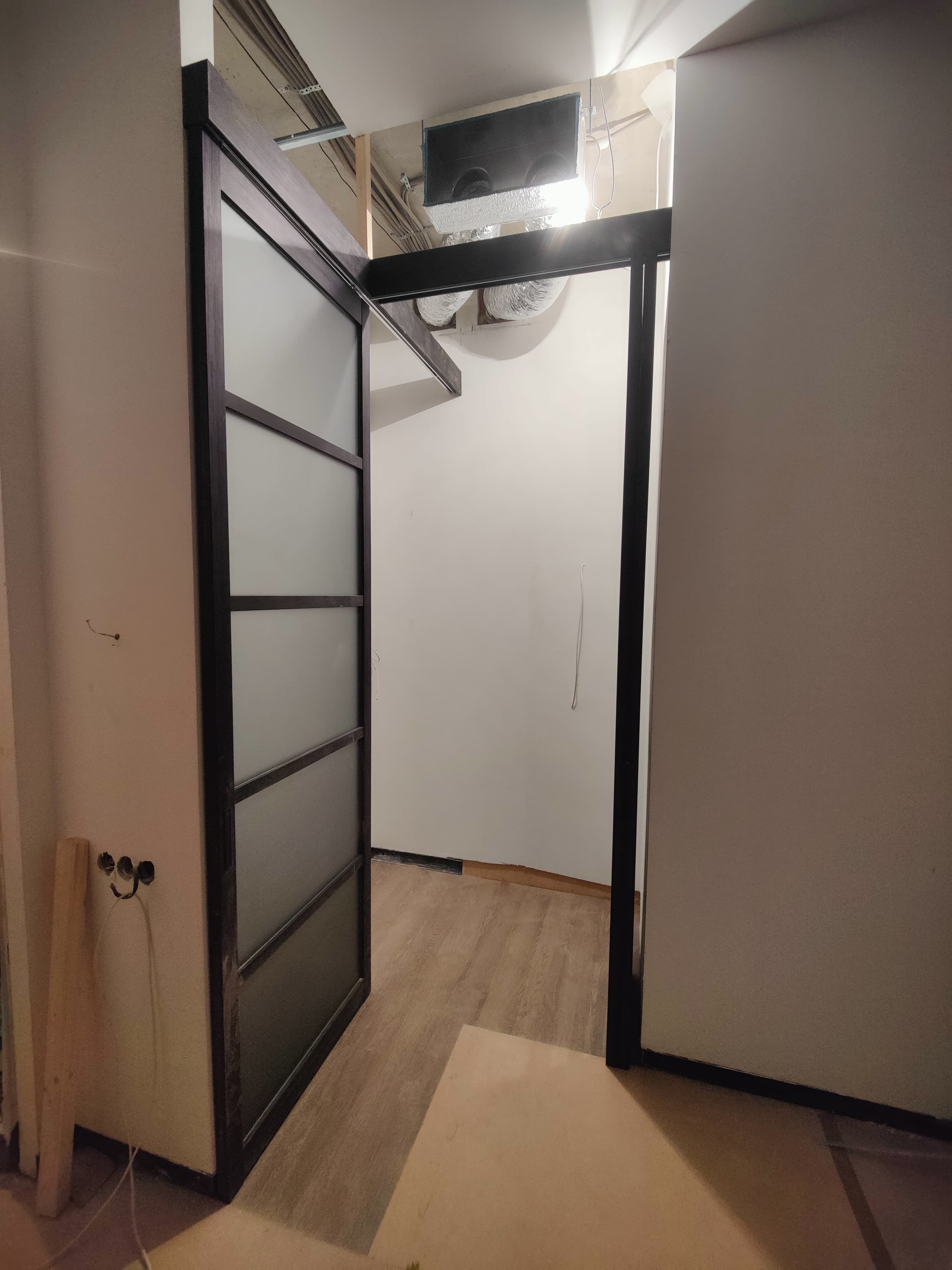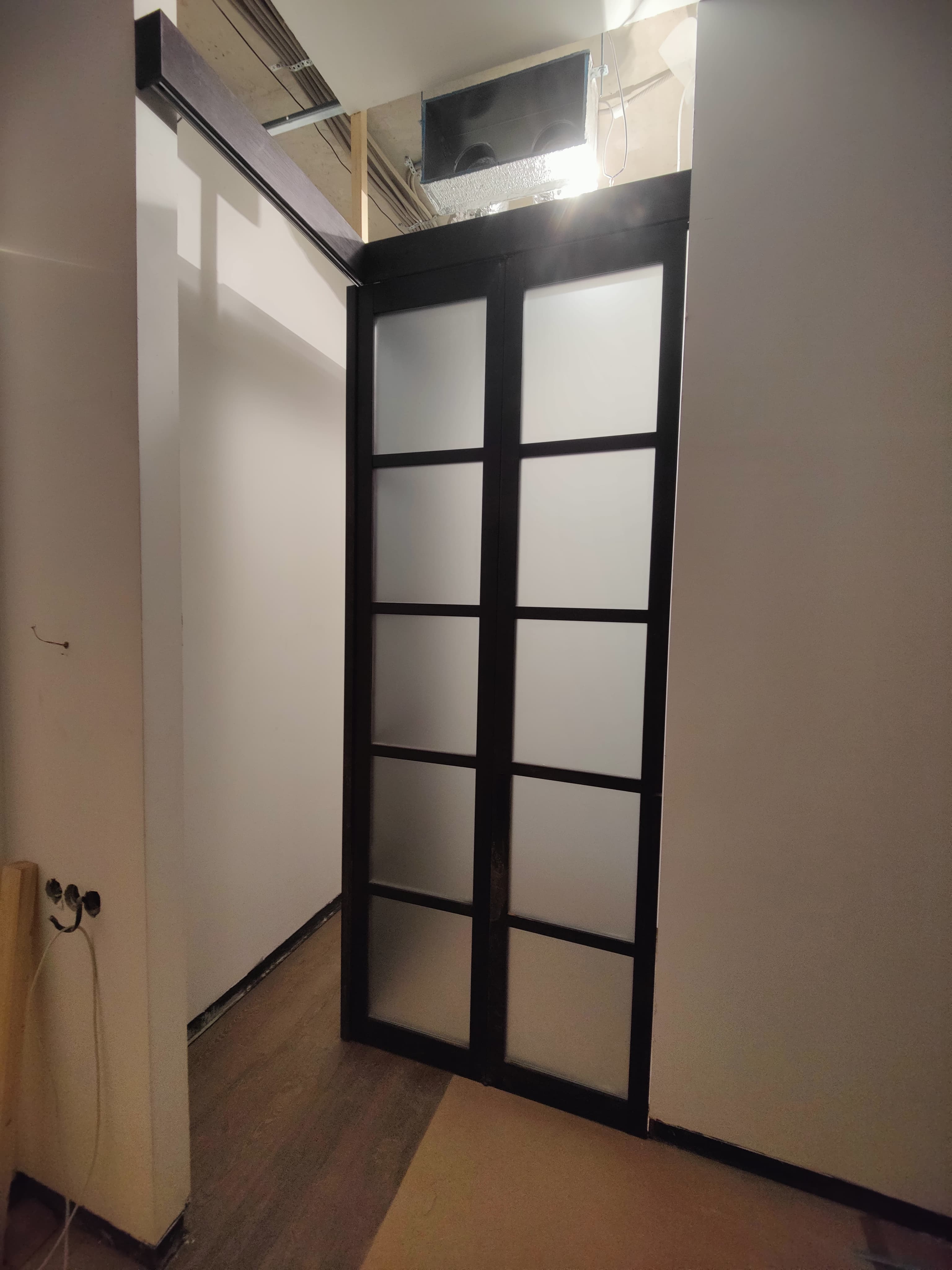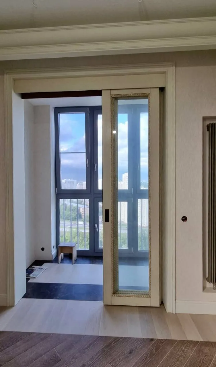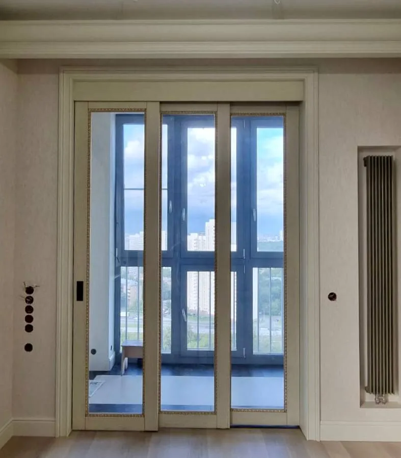 Для компактных комнат применяются раздвижные модели. Двери-купе открываются внутрь перегородки и не нуждаются в дополнительном свободном пространстве. Направляющий рельс располагается сверху или на полу. Эти конструкции используются в современных стилях интерьера.