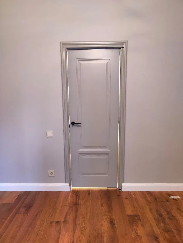 - минимализм — используются холодные оттенки, отделка дверей отличается лаконичностью;