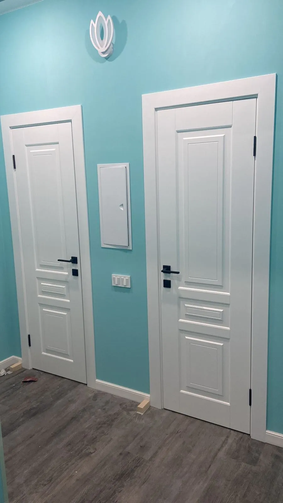 Оптимальный вариант — сочетание двери с цветом напольного покрытия. Если в комнатах используется различная отделка пола, то следует подобрать общий оттенок всех полотен, который не создает дисгармонию. При выборе цвета межкомнатных вариантов можно также ориентироваться на установленную мебель.